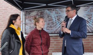 Archieffoto: Laura (midden) en haar even talentvolle zus Merel worden gefeliciteerd door wethouder Sport Paul Loermans.