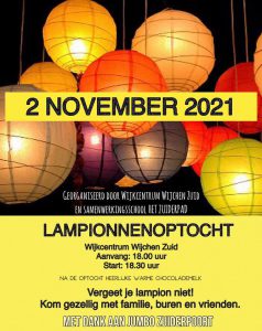Wijkcentrum Wijchen Zuid i.s.m. samenwerkingsschool Het Zuiderpad: "We gaan een gezellige route lopen. Mensen die het leuk vinden om hun huis of tuin te versieren, kunnen mailen voor de route!