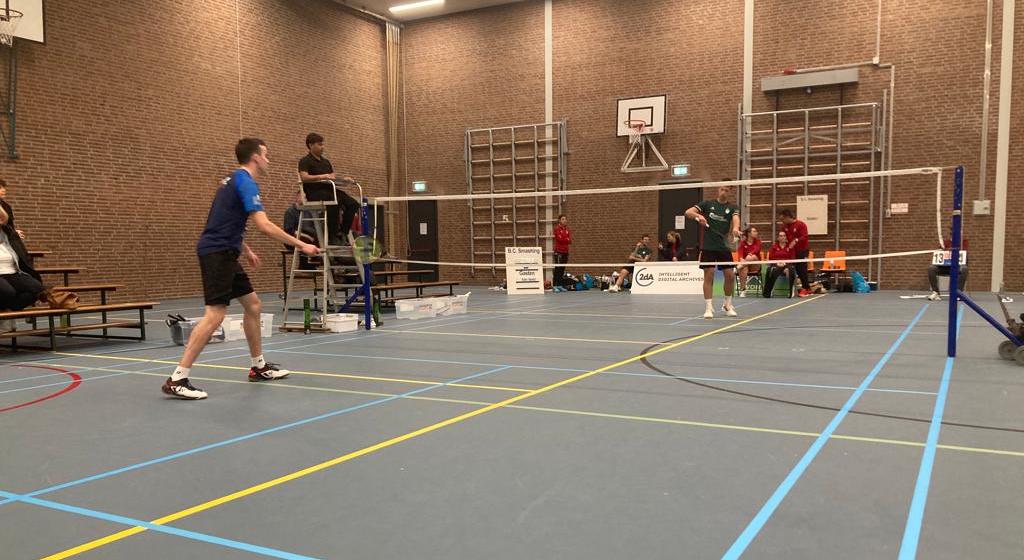 Op de andere baan stond het gelegenheidskoppel Yannic en Teun tegen Jim Middelburg en Russell Muns. In de eerste set moesten de heren nog wennen aan het hoge tempo van de spelers van VELO. In de tweede set konden ze hier beter mee omgaan en ging het zelfs een lange tijd gelijk op. Helaas konden de heren van VELO nog een tandje bijzetten en trokken deze wedstrijd naar zich toe, 0-2.