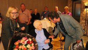 Natuurlijk was ook burgemeester Van Beek aanwezig, ze bood de jubilaris een prachtige bos bloemen aan. Wethouder Titus Burgers was eveneens aanwezig en alhoewel in functie is hij ook nog eens familie van Rika.