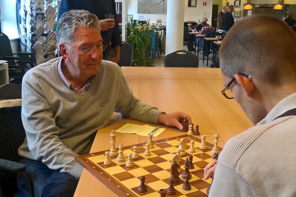 Alle acht spelers van het team leverden hun bijdrage aan de uiteindelijke 6 ½ – 1 ½ overwinning. Aan de hoogste borden was er winst voor Willem van Berkel (foto) en Kaz Haans. Ook Henk van Kortenhof, Bram Rutten en invaller Albert Verhaaren wisten hun Arnhemse tegenstanders tot opgave te dwingen. Twan Rutjes, Simon van Dijk en Henk Massink wisten er een remise uit te slepen.