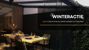 “Van 9 november 2021 t/m 9 december 2021 krijg je bij de aanschaf van een veranda of tuinkamer de verlichting van ons cadeau. Onze led-verlichting is dimbaar en wordt geleverd inclusief afstandsbediening. Zo kun je het licht eenvoudig aanpassen naar iedere gewenste sfeer.”