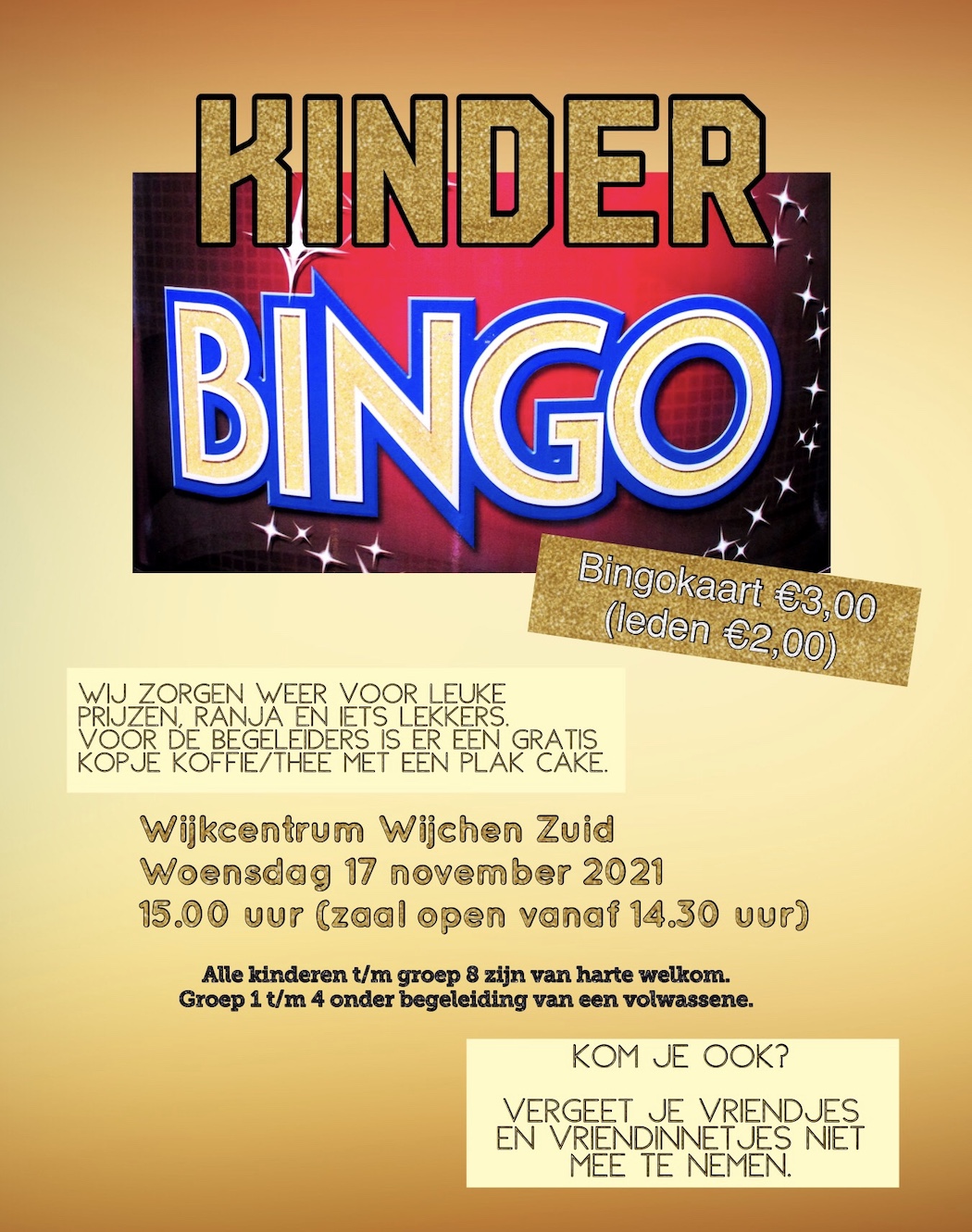 Bingokaart €3,00 (leden €2,00) Opgeven graag via: 06 51324080