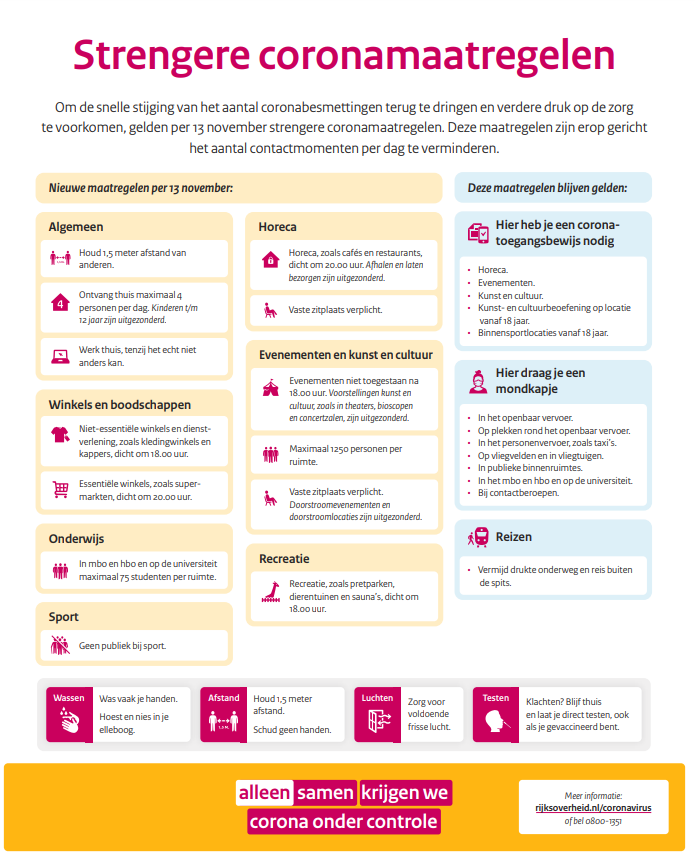 Vanaf zaterdag 13 november 18.00 uur gelden de volgende maatregelen: