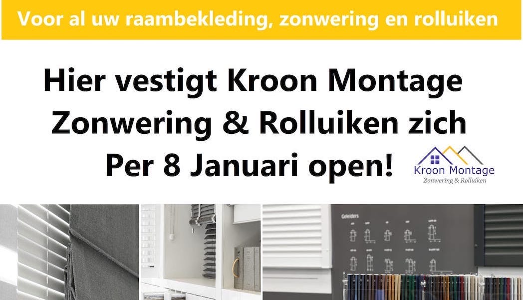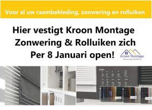 “Vanaf 17 december sluiten wij, op onze huidige locatie, de Graafseweg 837 in Wijchen. Op 8 januari 2022 hopen wij u te kunnen verwelkomen aan de Buys Ballotstraat nr 14 in Wijchen!” Dat laten de zonweringspecialisten van Kroon Montage weten.