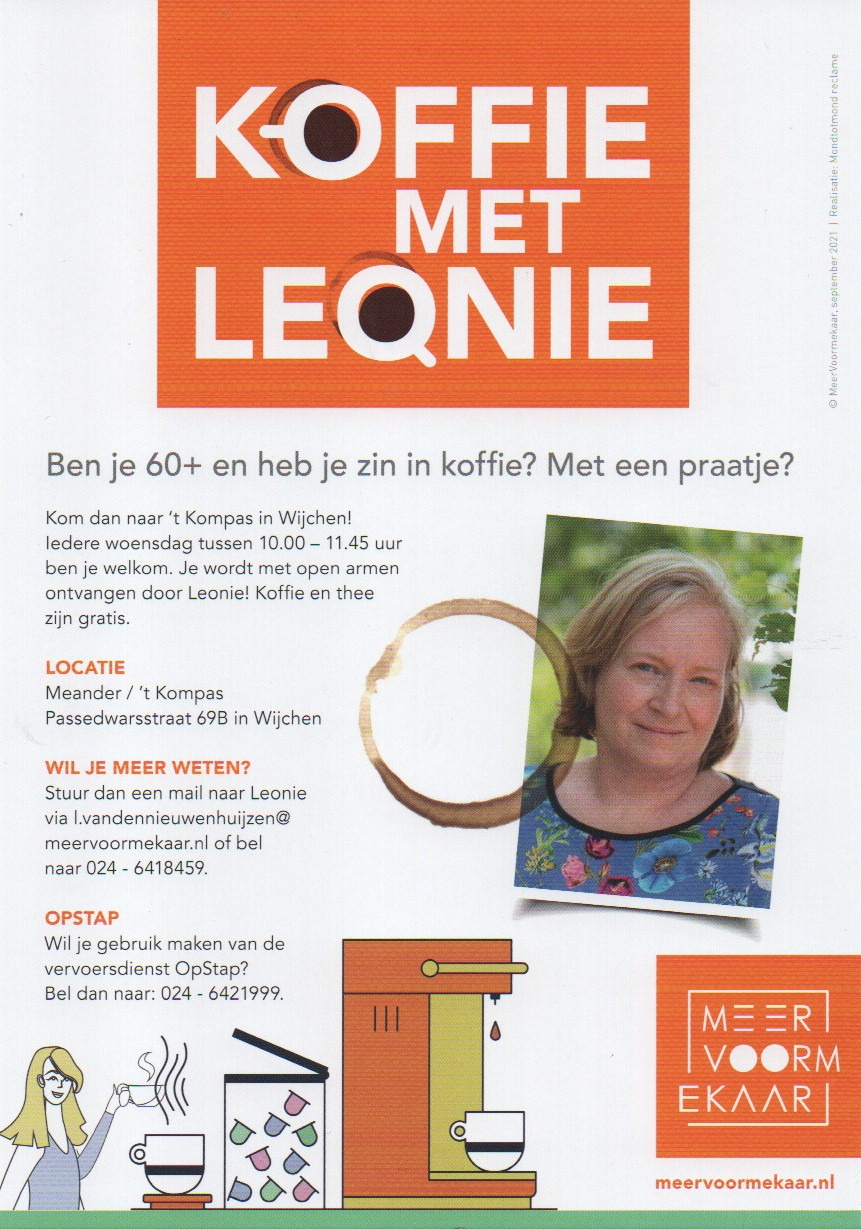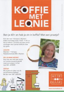 Bjorn heeft nu echter tevens contact gezocht met Leonie en Frank van MeerVoormekaar en heeft zich aangesloten bij het project ‘Koffie met Leonie’ om zo ook de bezoekers bij ‘t Kompas aan de Passedwarsstraat 69b te helpen en te ondersteunen door middel van een goed gesprek en eventueel de bril te poetsen.