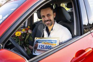 De uitreiking aan winnaar Sjoerd uit Wijchen is op 11 december vanaf 21.35 uur te zien in ‘Postcode Loterij Eén tegen 50’ bij RTL 4.