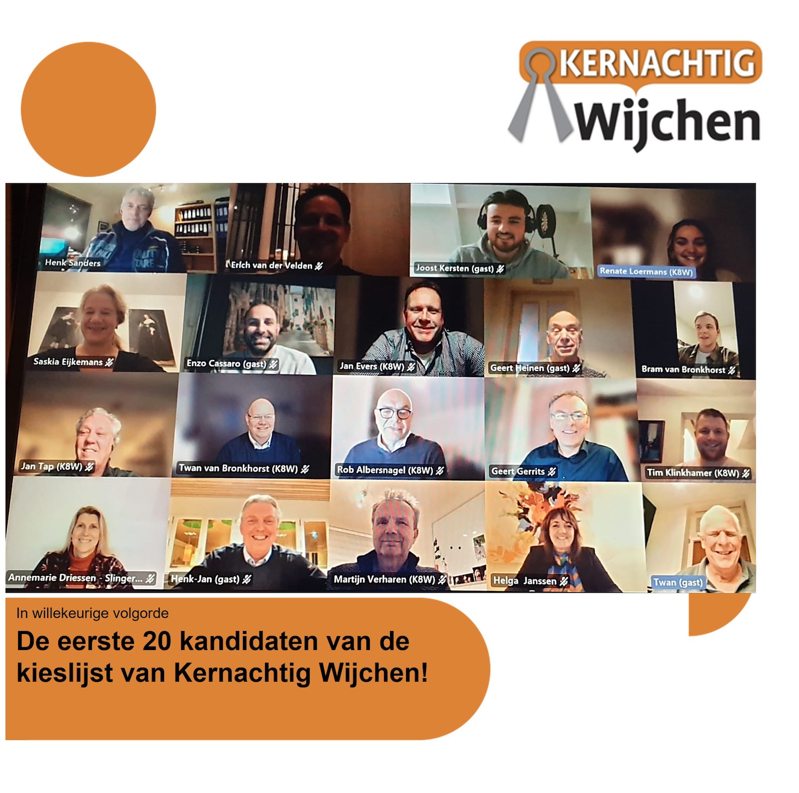 Kernachtig Wijchen heeft de eerste 20 namen van haar kandidatenlijst voor de gemeenteraadsverkiezingen van 2022 bekend gemaakt. De overige namen op de lijst worden binnenkort vastgesteld in de ledenvergadering. Opnieuw is het de partij gelukt om een aansprekend en gevarieerd team samen te stellen. Daarmee probeert Kernachtig Wijchen de komende verkiezingen weer een brede steun te krijgen voor haar plannen.