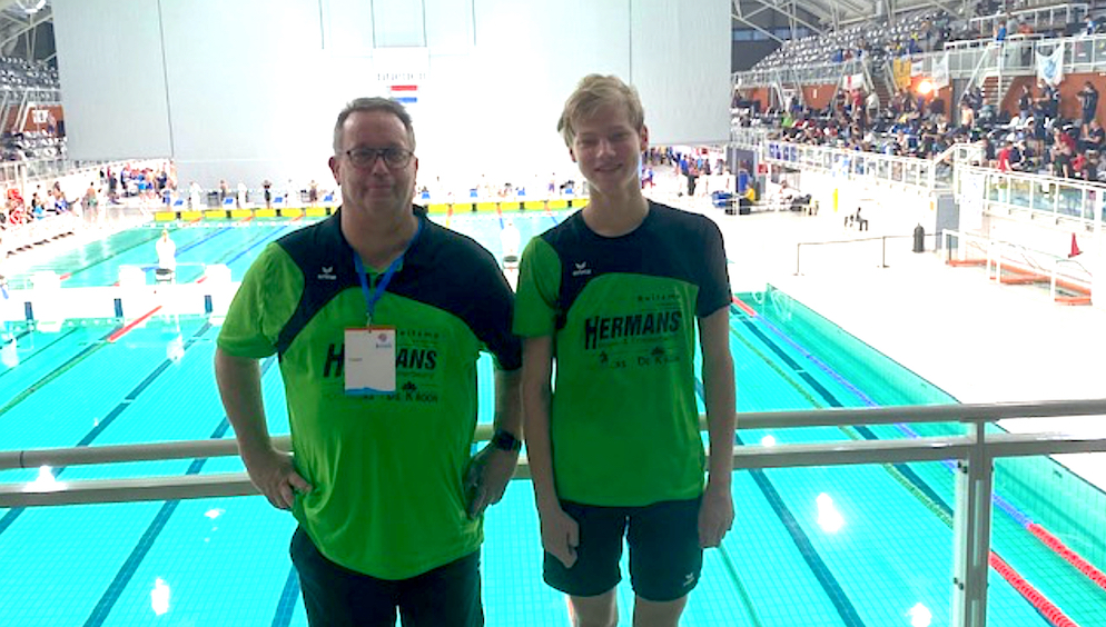 Op de foto Timen (rechts) met trainer Patrick. Zwemvereniging Wijchen biedt wedstrijdzwemmen en recreatief zwemmen, voor jong en oud! Wil je een keertje meezwemmen? Kijk dan op zvwijchen.nl of stuur een mailtje naar: secretariaat@zvwijchen.nl.
