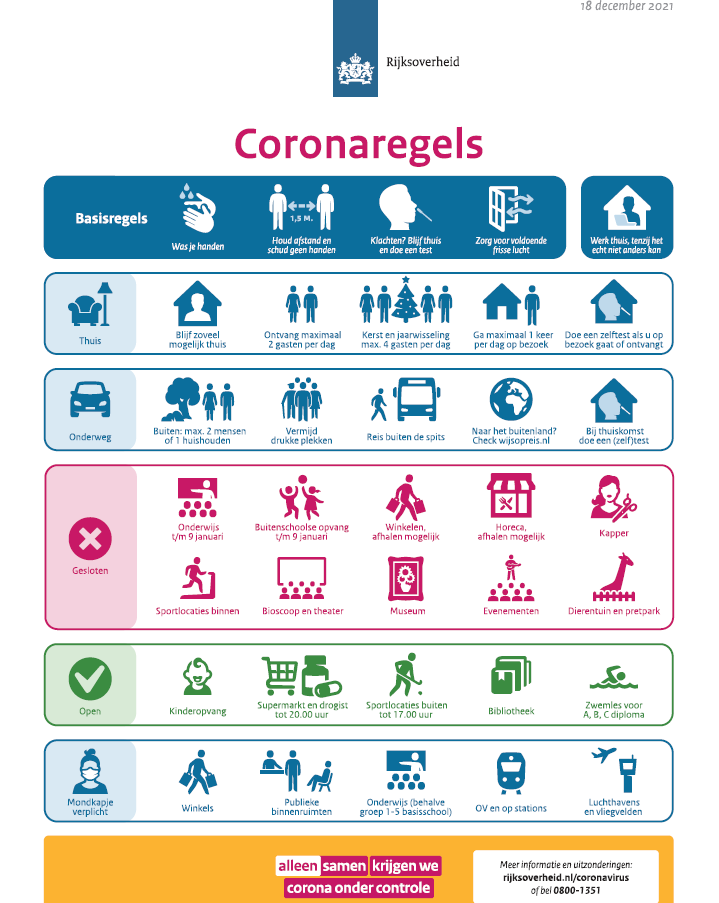 Samenvatting in beeld: Nederland in Lockdown en coronaregels vanaf 19 december 2021