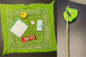Bovendien is de survivalkit gemaakt in de vorm van een knapzak, die kun je namelijk makkelijk op anderhalve meter aanpakken: lekker coronaproof!