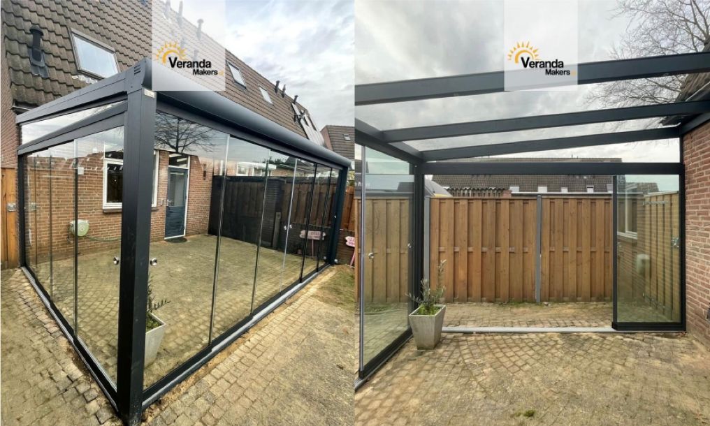 “Nog net voor het einde van het jaar hebben we deze tuinkamer mogen plaatsen in Wijchen. Aan de zijkant is net als aan de voorkant gekozen voor een glazen schuifwand. Zo behoudt deze klant de doorloop naar de poort en kan de tuinkamer tijdens de warme dagen goed geventileerd worden”, laten de specialisten van Verandamakers weten.