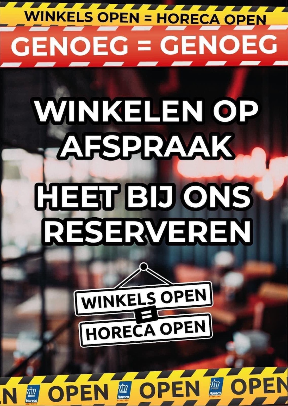 Aanstaande zaterdag 15 januari zullen daarom sowieso Sterrebosch, Zaal 4, Brownies & downieS, De Tyd, Thuis bij Fien, Café Anneke, Meneer Smit, Lieve Sophie, De Eikenhorst en Vesta als teken van protest buiten beperkt geopend zijn van 11:00 tot 16:00 uur. Van nog niet alle horecagelegenheden is bekend of ze meedoen aan de actie. Tevens hanteren sommige voor deze actie andere openingstijden.