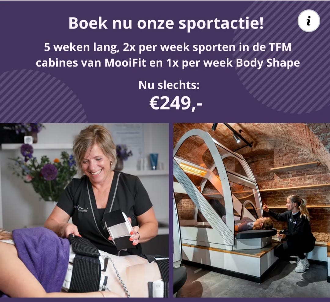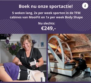 - twee keer per week sporten in de TFM-cabines van Mooifit