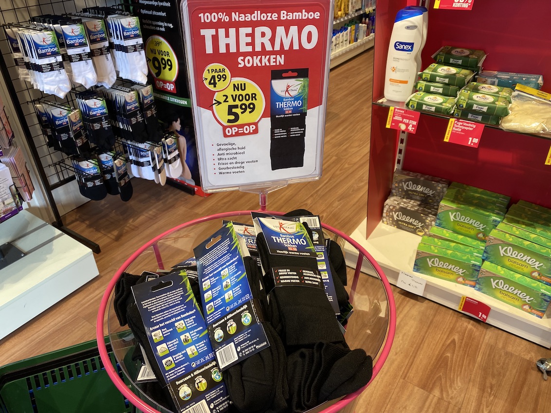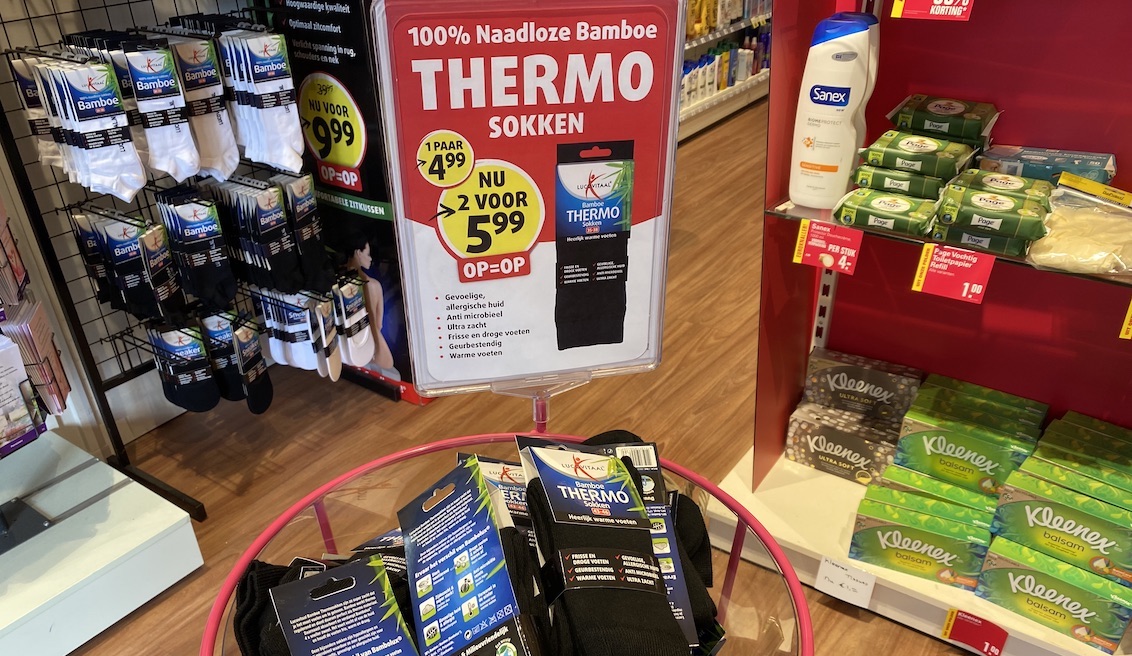 Zo is er deze week extra korting op Thermo-sokken, de COVID-zelftest, de Kotex inlegkruisjes, de Sanex Douchecrème en Guhl Color & Care biedt zelfs 1 plus 1 Gratis!