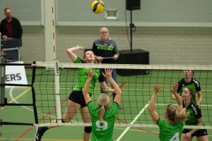 In de tweede set begint Peter met dezelfde opstelling. Deze set kenmerkt zich door veel servicefouten, van beide teams, maar met SSS in de lead. Beide teams lijken ook opgewarmd te zijn, er wordt sneller en met meer aanvalskracht gespeeld. De verdediging levert uitstekend werk met Wieneke Eggermont aan de kant van Trivos, zoals altijd een sterke stabiele kracht. De set start gelijk op met harde aanvallen van SSS en van Norah van Beers aan de kant van Trivos. Er volgen lange en mooie rally’s waarin onder ander Esmee Driessen een paar prachtige klappen uitdeelt. Tot halverwege de set blijft het echter gelijk op gaan. Daarna komt Trivos op voorsprong, door mooie aanvallen van Norah van Beers, Evie Driessen en Manon Ottjes. SSS blijft echter aanhaken en scoort met name door de sterke middenaanval. Bij de stand 17-17 past Peter een dubbele wissel toe en brengt hij Debbie de Graaf en Lonneke Hoffmans in het veld voor Manon Ottjes en Nota van der Bend. Het gaat nog even gelijk op maar een prachtige aanval van Kristy Goijarts en een smash van Manon Ottjes brengende de stand op 20-20. Vanaf nu zet Trivos door en zijn het eerst een mooi blok van Norah van Beers en daarna twee harde smashes van Manon Ottjes en Esmee Driessen waarmee Trivos de winst in deze set in de wacht sleept met 25-22.