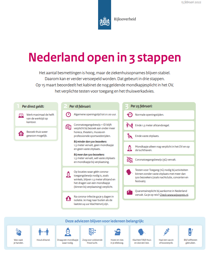 Nederland gaat weer open. Dit gebeurt in 3 stappen.