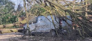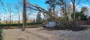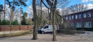 De storm met de naam 'Dudley' raast ook over Wijchen, getuige deze afgebroken boom bij Umberto aan de Graafseweg op Alverna.