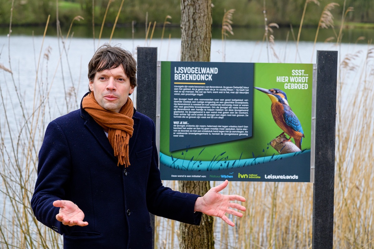 Gisteren is de gloednieuwe ijsvogelwand op recreatiegebied Berendonck geopend door initiatiefnemers IVN Rijk van Nijmegen, Natuur Wijchen en Leisurelands.