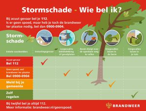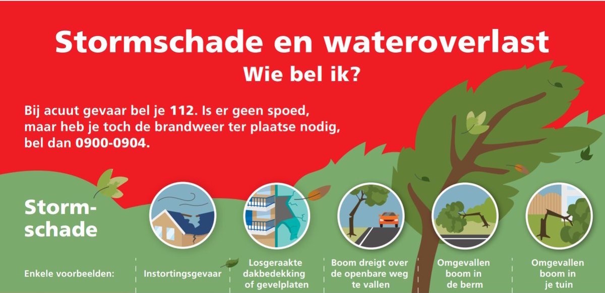 Het advies is om binnen te blijven. Op meerdere plaatsen door het land, ook in Wijchen, vonden ongevallen plaats door omvallende en waaiende voorwerpen. Alarmnummer 112 is overbelast door de vele meldingen. ''Bel alleen 112 bij levensgevaarlijke situaties'', staat in de melding.