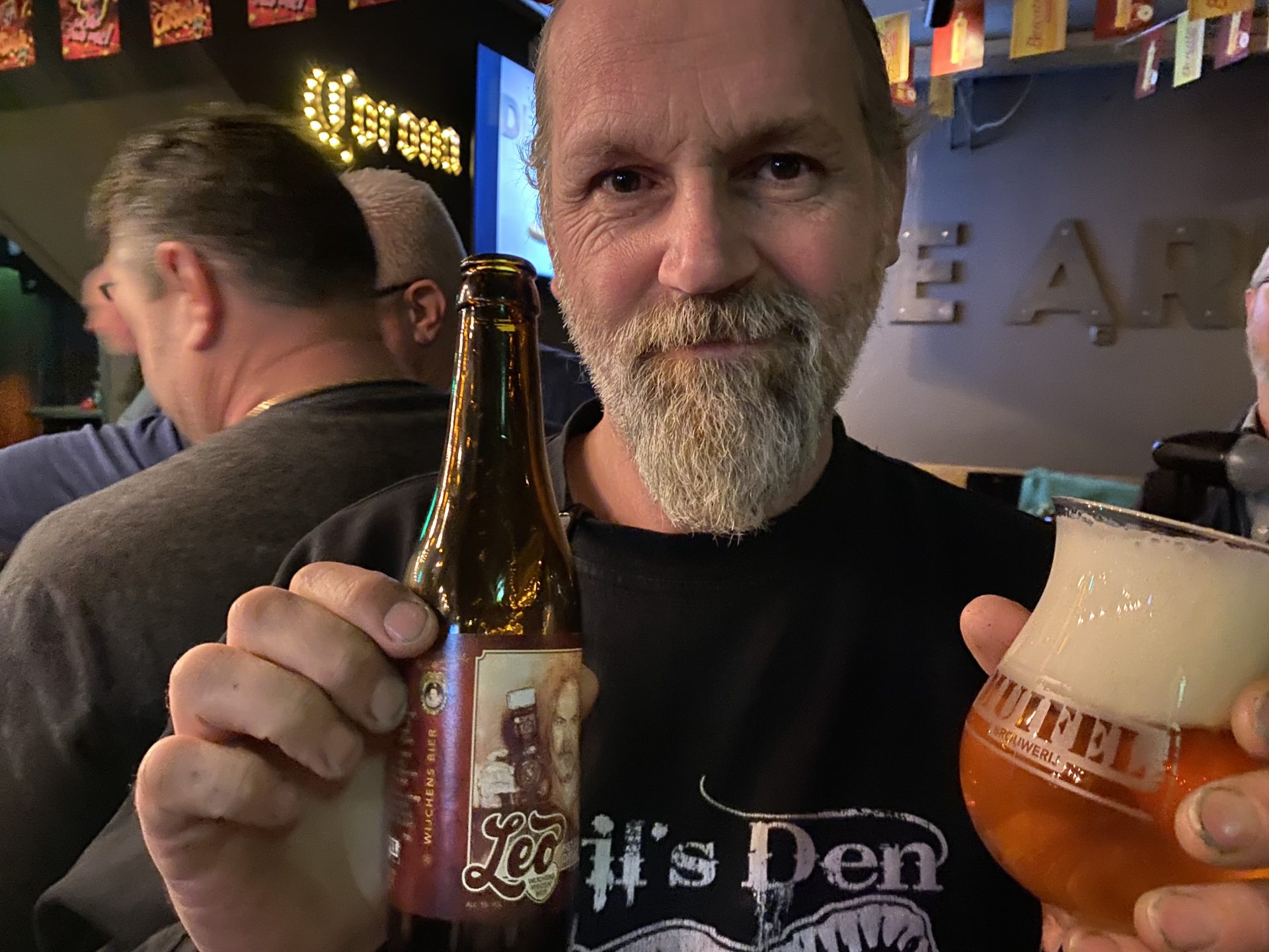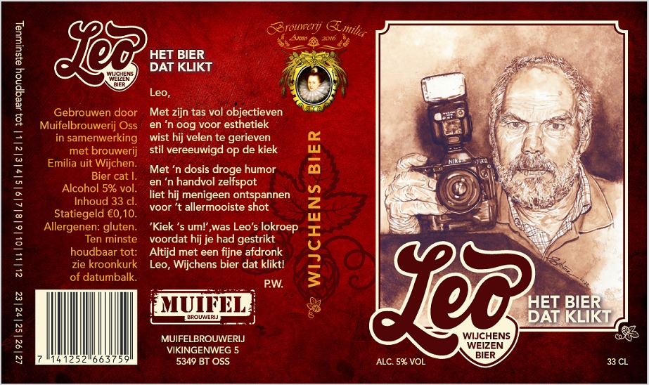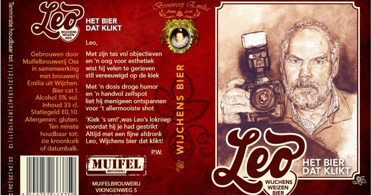U kent zeker de bekende Wijchense Wegwijs-fotograaf Leo van Haren die in 2021 overleed. “Ja, Leo is een bier dat klikt zoals u zult begrijpen. Het was een eer voor mij om het eerste biertje aan zijn dochter Sabine uit te reiken! Leo is gebrouwen door Muifelbrouwerij Oss in samenwerking met Brouwerij Emilia uit Wijchen. Dat ben ik dus.”
