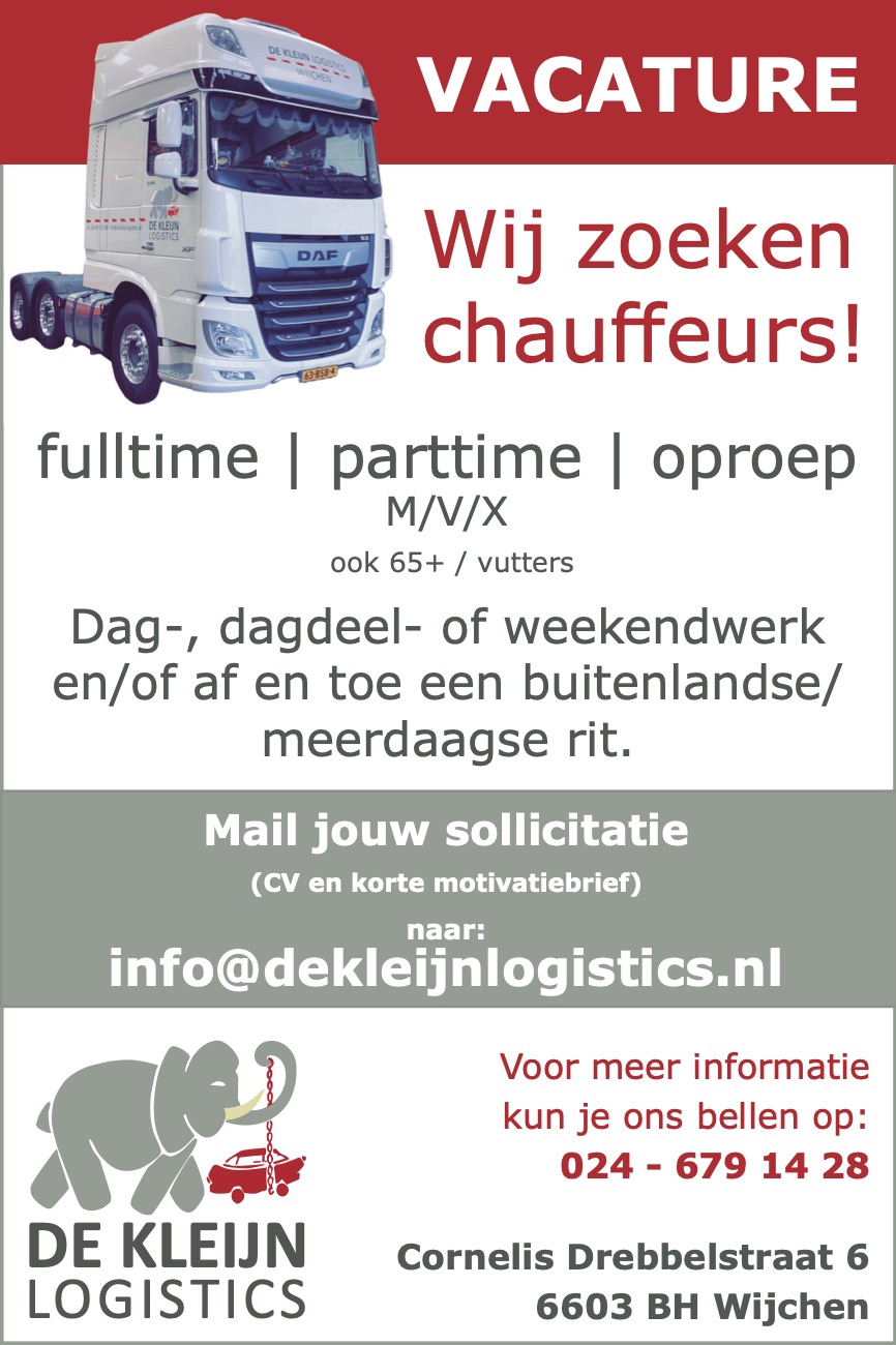 Vacature: De Kleijn Logistics zoekt chauffeurs
