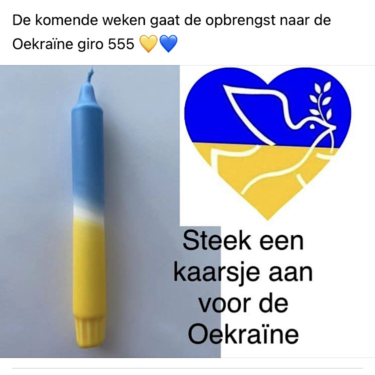 De opbrengsten van de kaarsen die de komende weken aangestoken gaan worden bij de Boskantse Mariakapel Wijchen op de Boskantse Broekstraat gaan naar Giro555, dus voor de noodtoestand in Oekraïne.
