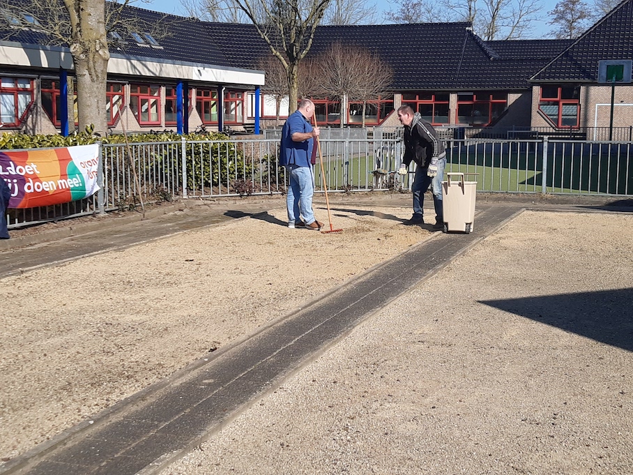 NLdoet MeerVoormekaar: Opschonen jeu-de-boulesbanen bij wijkcentrum Wijchen Zuid