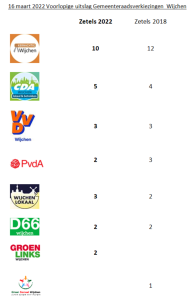 Voorlopige verkiezingsuitslag gemeente Wijchen 16 maart 2022