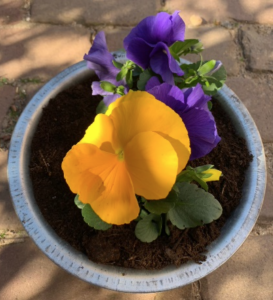 Het idee van de leerlingenraad is om viooltjes te gaan verkopen, als koppel geel en blauw.