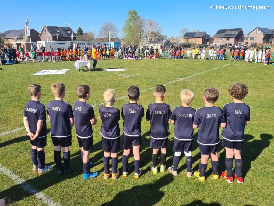 De opening van het toernooi begon om 10.00 uur, waarbij elke club met trots het veld opliep met een vlag van de club.