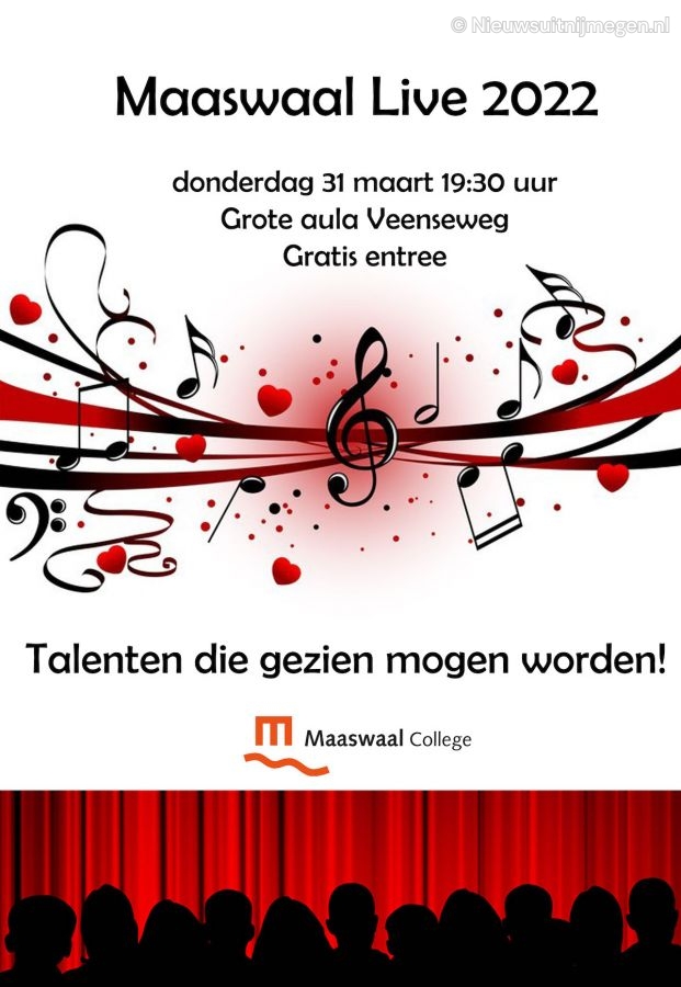 Op donderdag 31 maart 2022 vindt de 16e editie van Maaswaal Live plaats. Op deze avond laten leerlingen én medewerkers van het Maaswaal College locatie NeXT-havo-vwo (Veenseweg) elk jaar zien wat ze op muzikaal gebied in huis hebben.