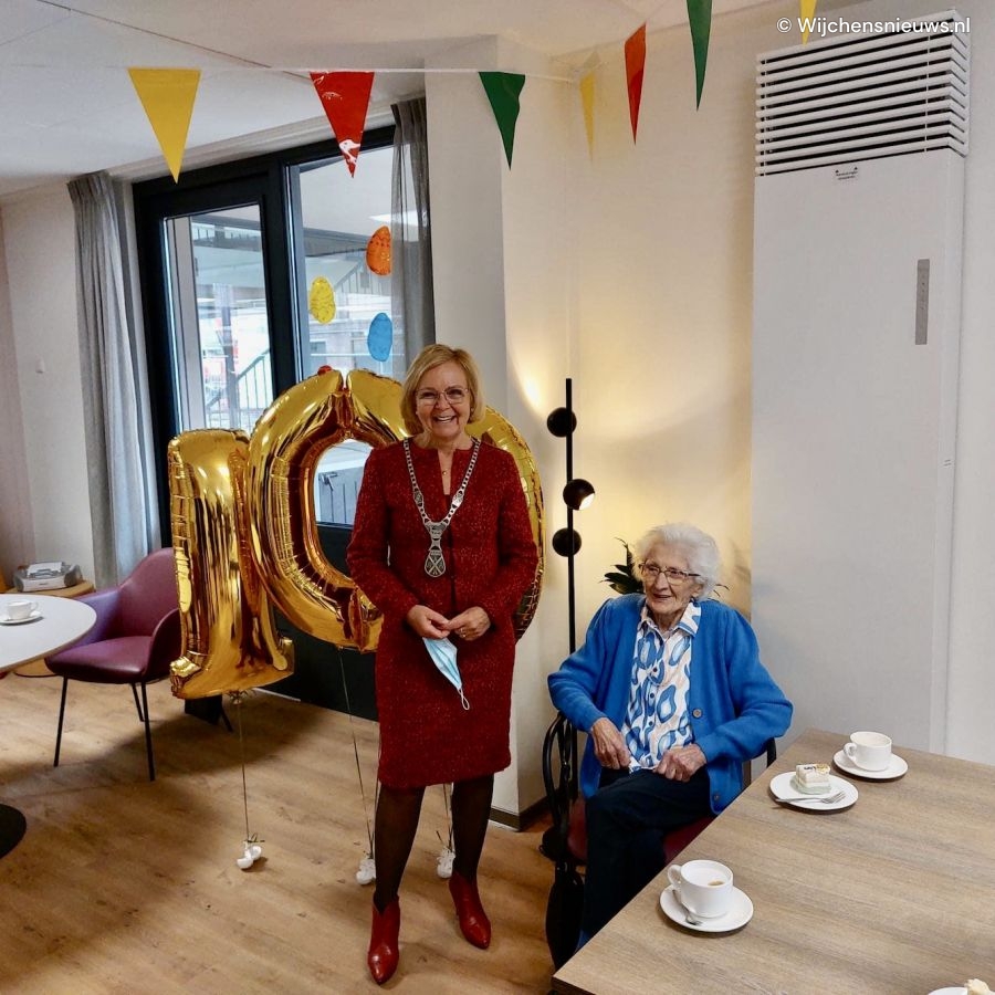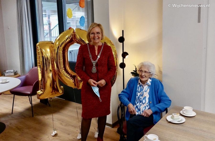 Marijke van Beek laat op zaterdag 2 april weten: “Wat een feest! 100 jaar! Uiteraard hebben we mw. Van Elleswijk vereerd met een bezoek, bloemen, gebak en een bon!