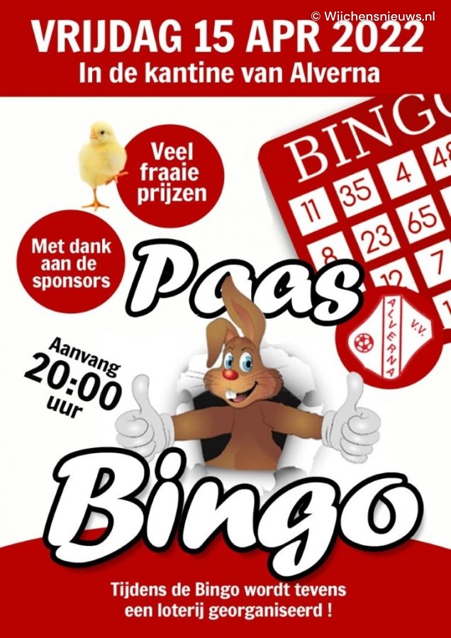 Vrijdagavond 15 april 20.00 uur in de kantine van VV Alverna