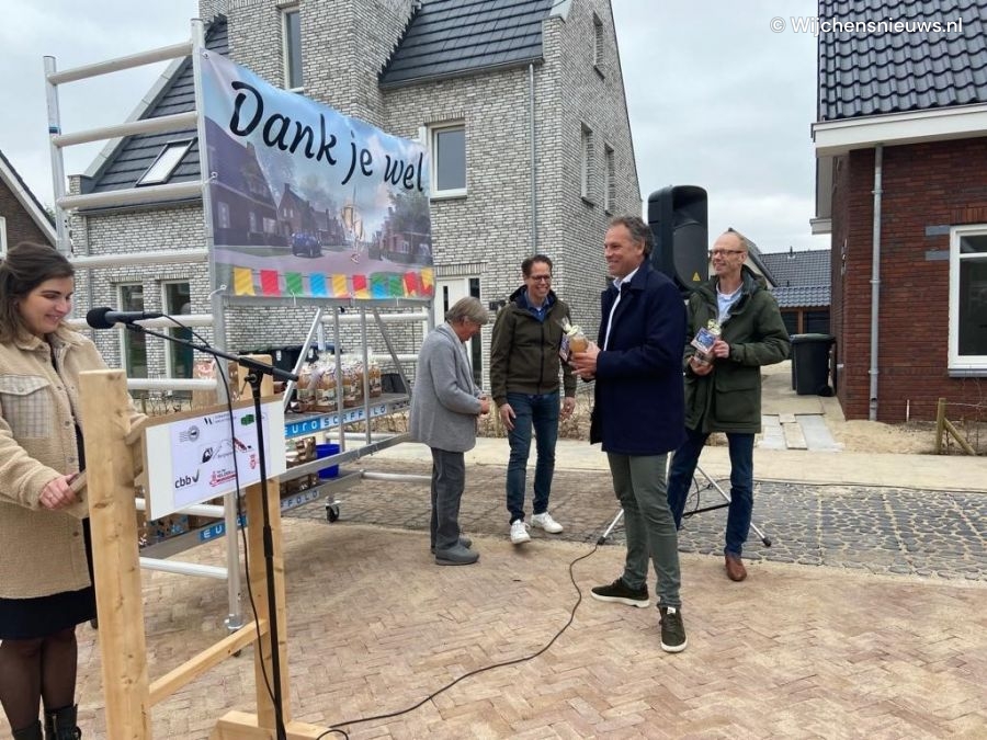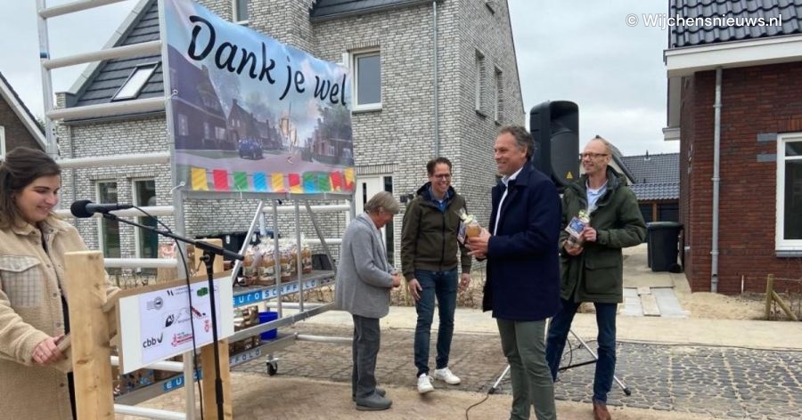Vrijdag 15 april zijn de twaalf woningen van CPO-vereniging de Rivierduin in Bergharen opgeleverd. De Rivierduin heeft op een historische woonplek een nieuwe buurt ontwikkeld. Niet alleen de woningen zijn opgeleverd, ook de nieuwe buurt zelf is zo goed als gereed. Voorzitter van de Rivierduin, Bas Bruisten, en wethouder Geert Gerrits van gemeente Wijchen stonden stil bij dit bijzondere moment door de onthulling van het straatnaambord Rivierduin.