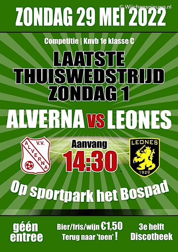 Daarom is a.s. zondag de láátste thuiswedstrijd van Alverna 1 op dit niveau (1e klasse KNVB)"