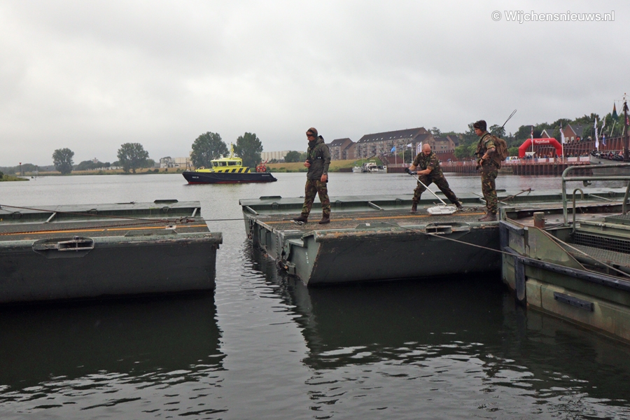 Traditiegetrouw vond gisteravond de proeflegging van de pontonbrug plaats. Om zes uur werd het eerste deel van de brug aan de zijde van Mook gelegd. Militairen van 105 Geniecompagnie waterbouw legden de brug, tijdens deze laatste Vierdaagsedag dé verbinding tussen Limburg en Brabant, binnen 20 minuten vast. Aan beide kanten van de Maas stonden tientallen belangstellenden om de legging van de brug te zien.