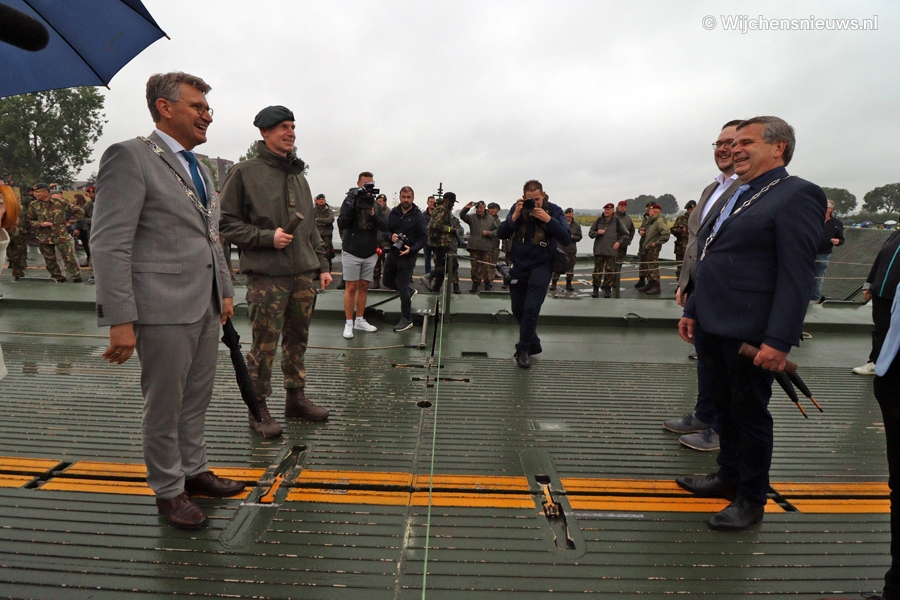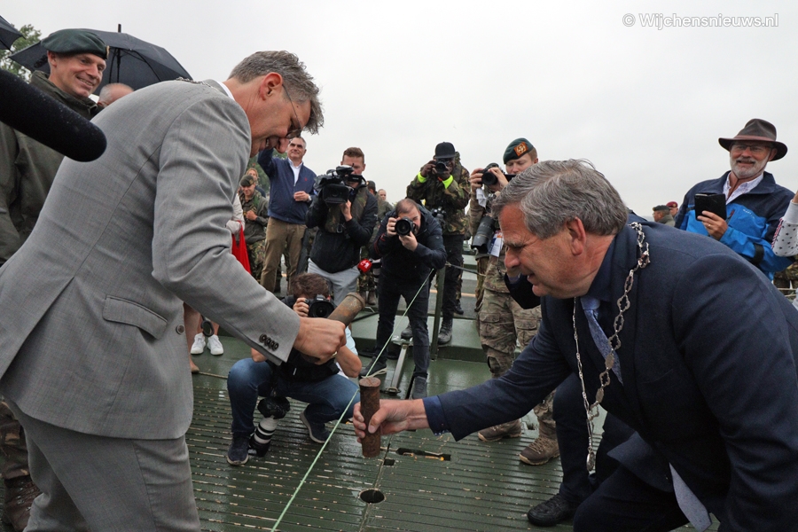 Nadat het laatste vierde deel van de brug vastgezet werd, kwamen burgemeester Wim Hillenaar van Cuijk en burgemeester Willem Gradisen van Mook en Middelaar elkaar tegemoet op de brug. Zij openden de brug officieel door met twee pennen een touw op het midden door de brug door te slaan. Vervolgens zongen zij het mineurslied mee en brachten een toost op het regiment Genietroepen met een brandewijntje. De brug werd feestelijk geopend voor het publiek vanuit Limburg en Brabant met muziek van het muziekkorps van het Regiment Genietroepen. Later op de avond werd de brug weer uit elkaar gehaald.