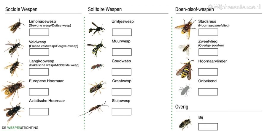 Doe mee en loop een rondje door de tuin en noteer de wespen die je tegenkomt op het speciale formulier. De organisatie: "We hopen op mooi weer, veel deelnemers en natuurlijk een heleboel wespen!"