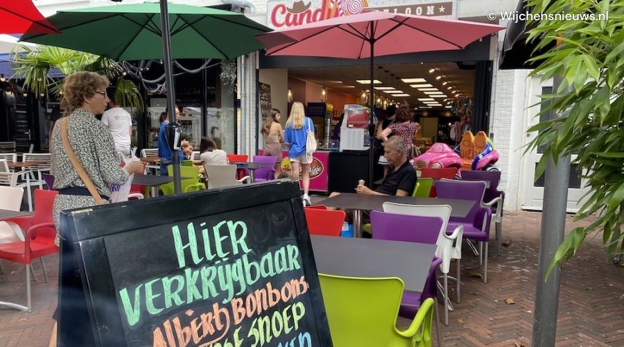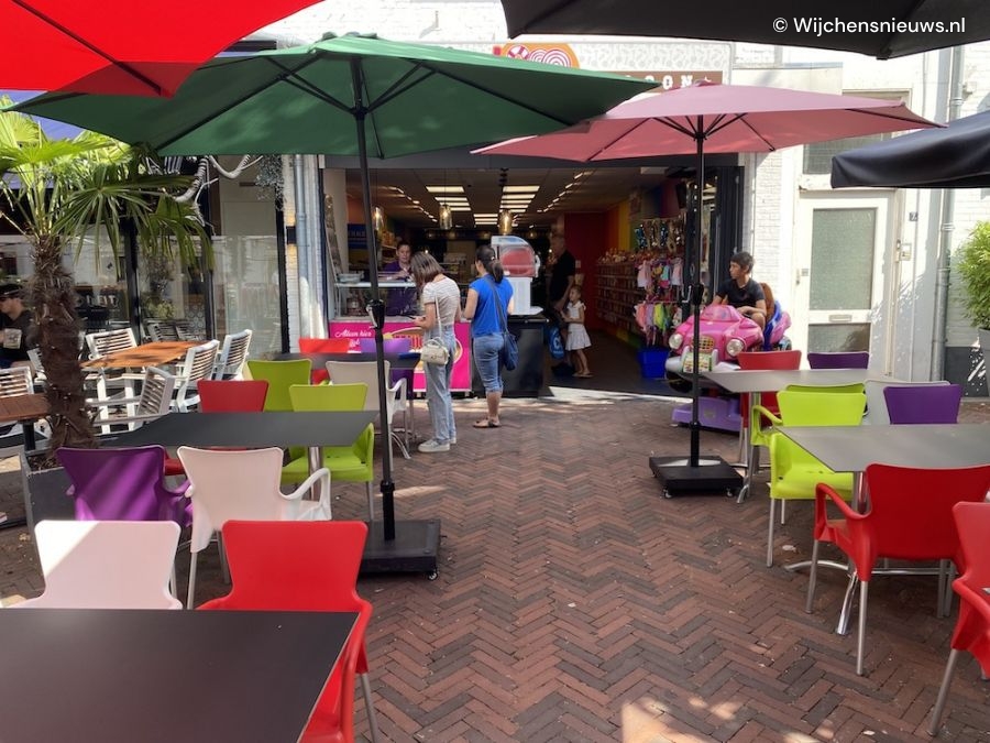 Wat een mooi kleurrijk terras, perfect passend bij het gekleurde snoep, heeft de Candy Saloon op de markt toch aangeschaft!