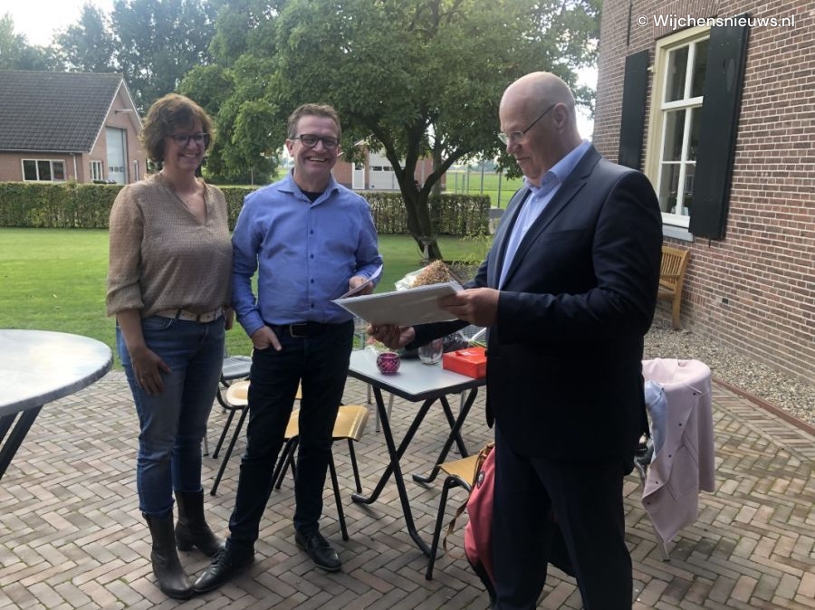 “U ontvangt de monumentenprijs van de gemeente Wijchen, omdat u veel heeft gedaan om dit bijzondere complex te behouden. U bent met zorg en oog voor detail te werk gegaan”, zo zegt wethouder Twan van Bronkhorst. “Daarnaast is het complex versterkt door de sloop van een niet-monumentale aanbouw en de herbouw van de karnmolen. Hierbij is een cultuurhistorisch pareltje voor de gemeente bewaard gebleven. Zonder uw inzet en grote betrokkenheid was dit niet mogelijk geweest!”