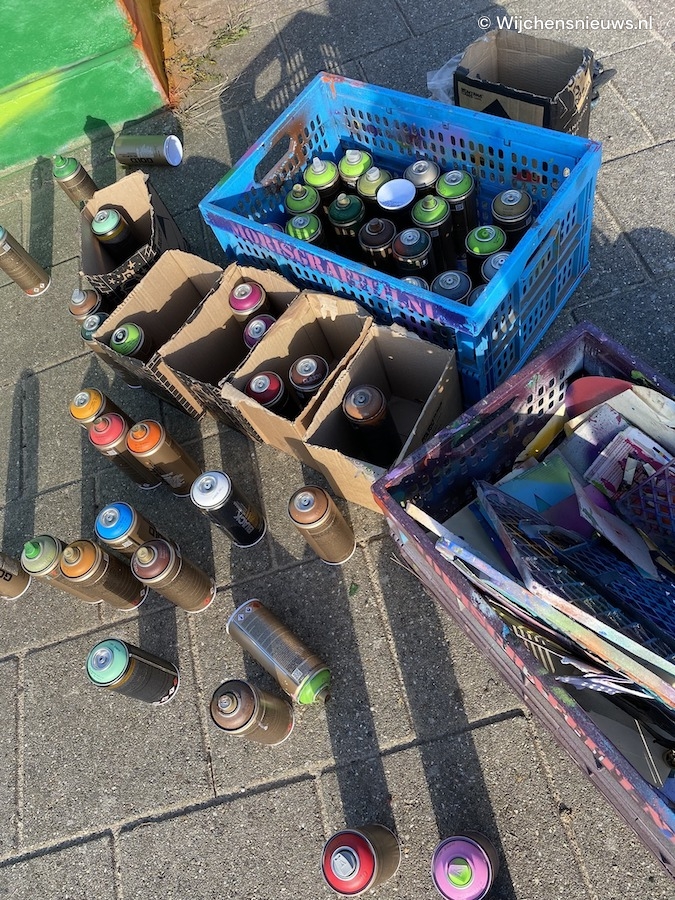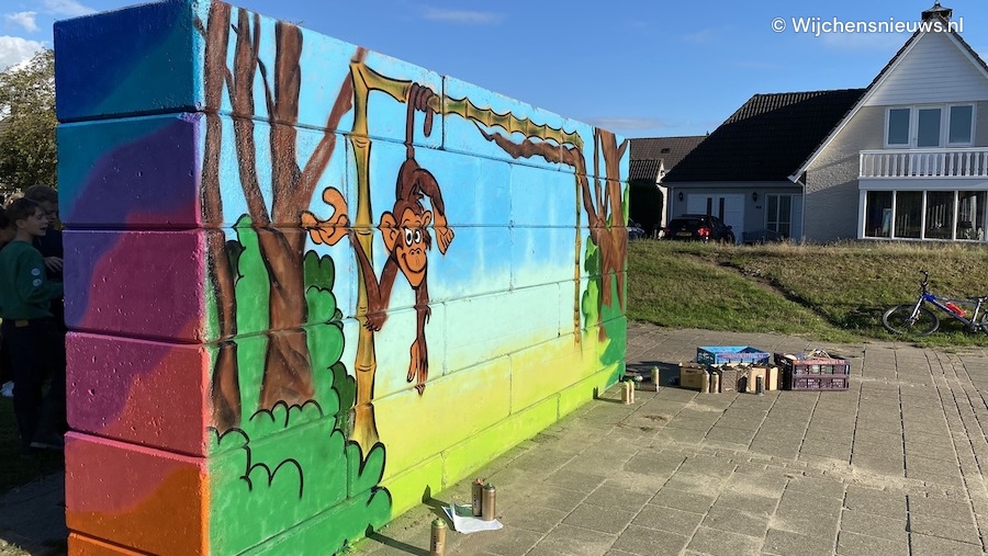Van tevoren had Moris Graffiti de schets al op de muur gespoten. De kinderen hadden na een korte uitleg al snel de smaak te pakken. Enthousiast gingen ze met allerlei kleuren aan de slag.