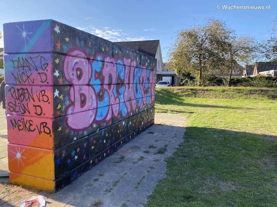 Zo'n week geleden deden 5 kinderen uit Bergharen mee met de graffitiworkshop aan de Ploegstraat. De gemeente meldt: "We organiseerden de workshop omdat de speelmuur toe was aan een opknapbeurt.