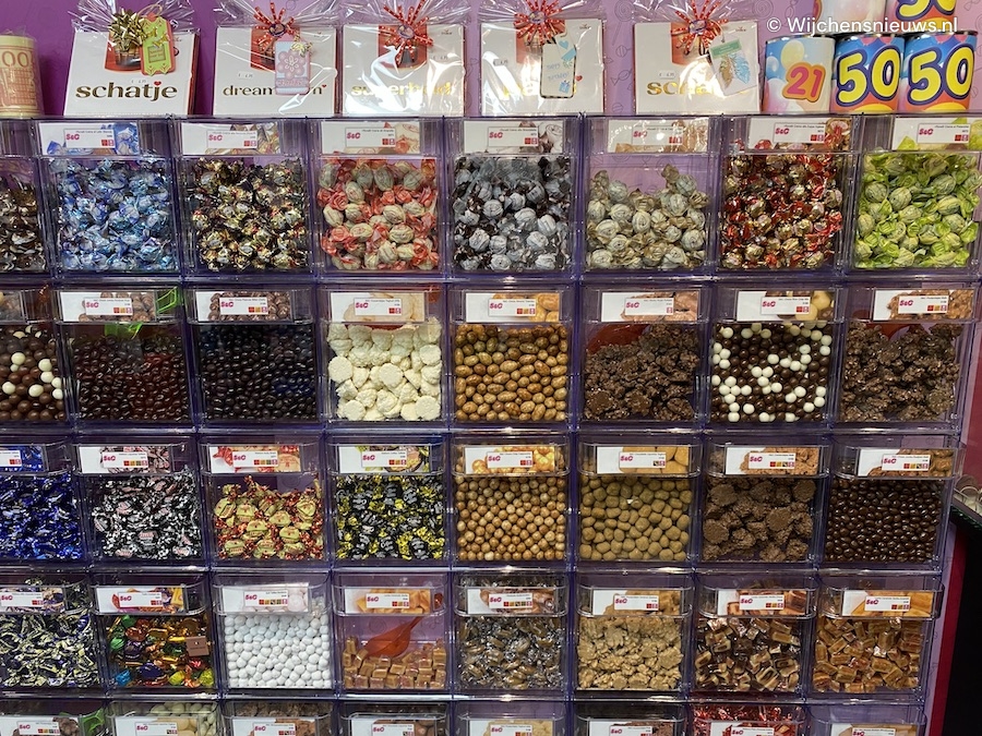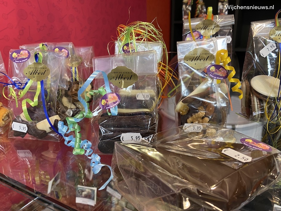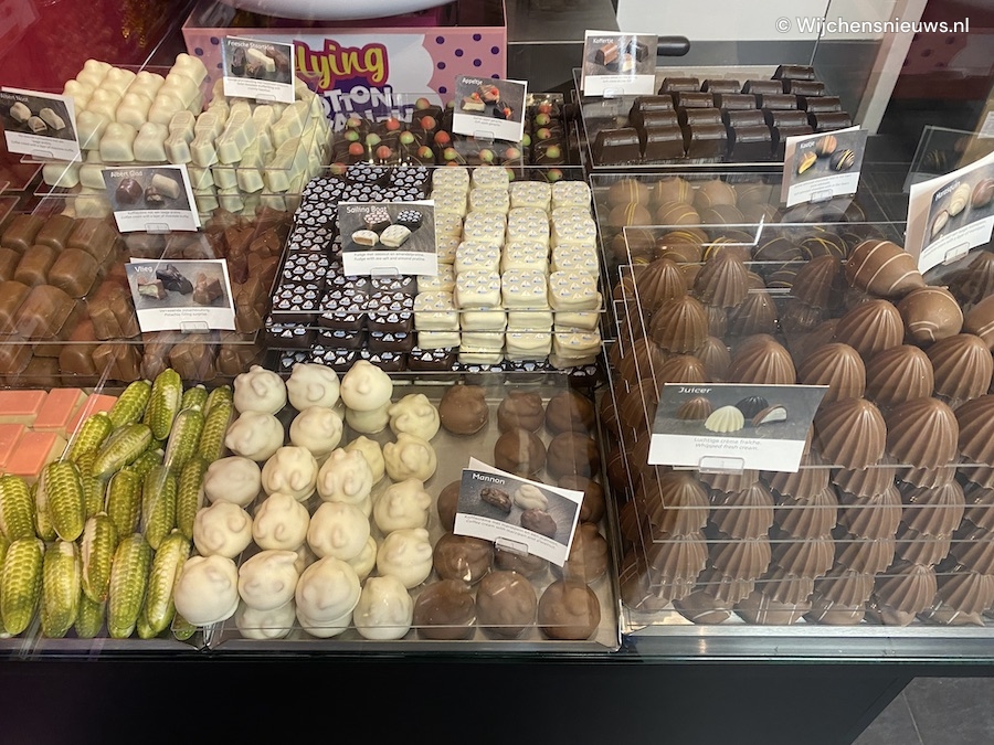 Wie voor de vitrines van Chocolaterie Albèrt in de Candy Saloon staat, loopt het water in de mond. Zoveel lekkers van chocolade aan de Markt 8A in Wijchen.
