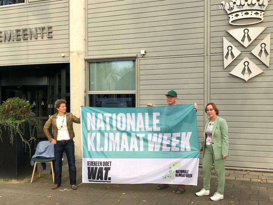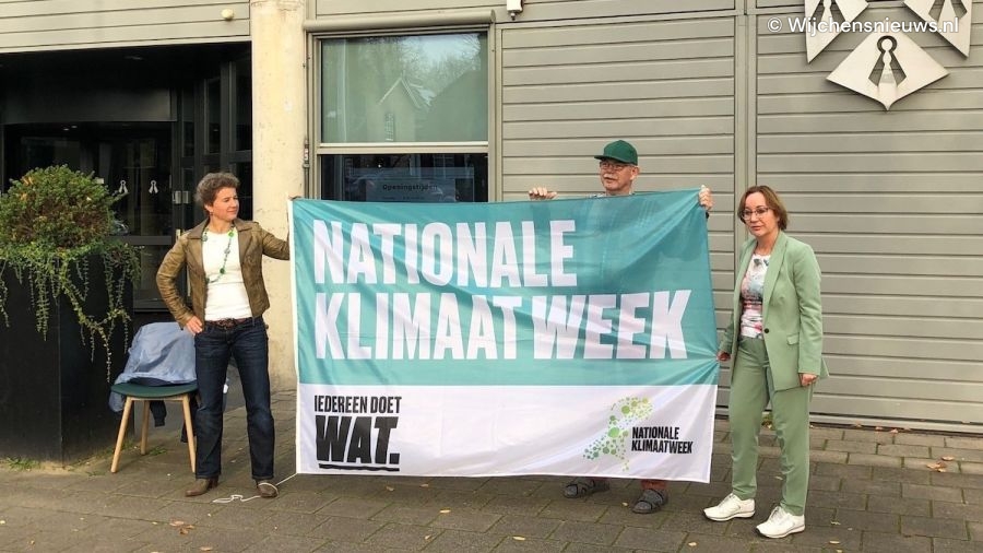 Klimaatburgemeesters Theo Hesen en Caren Schipperus hingen maandagochtend samen met wethouder Bea Schouten de klimaatvlag. De symbolische aftrap van de Nationale Klimaatweek. Om inwoners en organisaties te inspireren zich in te zetten voor een beter klimaat, organiseert de Rijksoverheid de Nationale Klimaatweek. Natuurlijk is de gemeente Wijchen klimaatsupporter! We organiseren deze week verschillende activiteiten én geven tips om zelf thuis goed om te gaan met het klimaat.