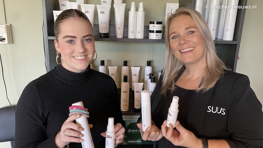 "Ook hebben we mini-flacons haarlak van Kis Haircare. Echt supergemakkelijk om in je handtas mee te nemen. Ze zijn verkrijgbaar voor slechts €3,95. Tevens hebben we een rescue-spray voor gekleurd en beschadigd haar. Zo versterk je je haar en voed je het met keratine voor €4,50.”