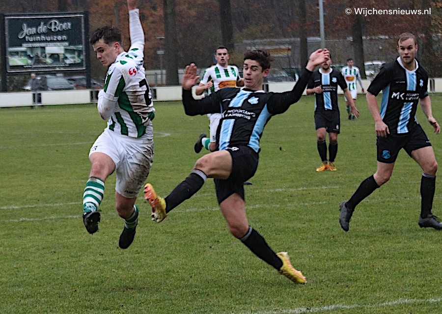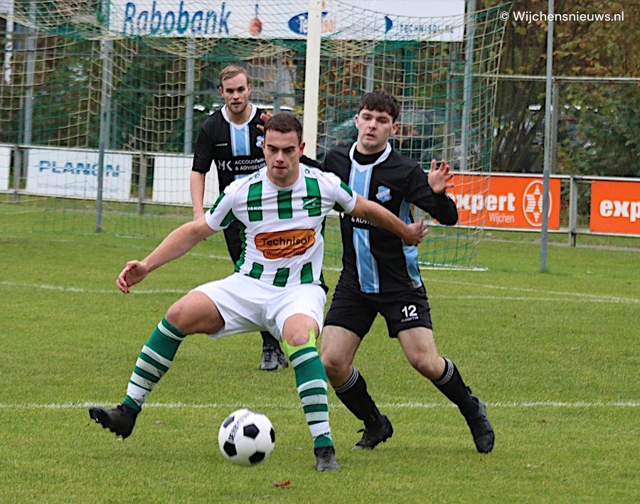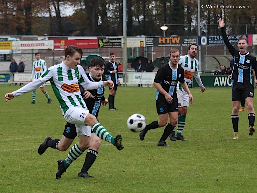 Op een regenachtige zondagmiddag speelde AWC thuis tegen EVV uit Echt. AWC is koploper en EVV staat in de middenmoot. Maar dat zegt niets in deze competitie.