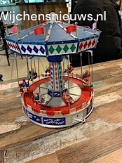 Deze zweefmolen is van langgeleden. Draait wel, maar de poppetjes zweven niet meer naar buiten. Helaas, de heren van het werkstation elektrische apparaten hebben het niet kunnen verhelpen. Het leverde wel deze mooie foto op. Heeft u ook iets bijzonders dat een opkapbeurt nodig heeft? Kom gerust langs!
