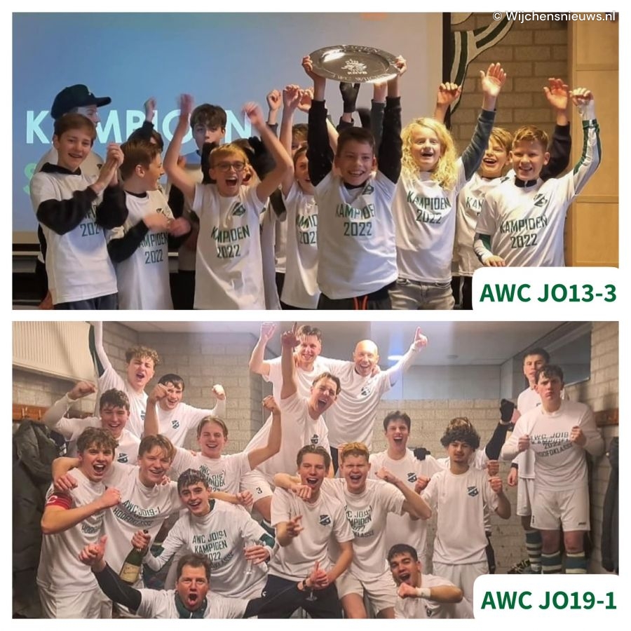 We lezen op de Facebookpagina van voetbalclub AWC: "Gisteren zijn zowel AWC JO13-3 als JO19-1 kampioen geworden.