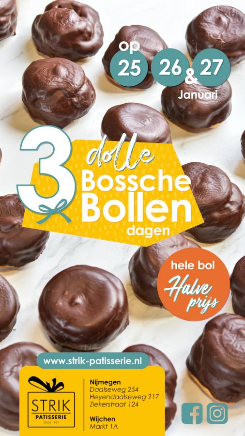 Let op: zonder bestelling maximaal 10 bollen per klant, dat is wel zo gezellig voor iedereen die óók zo zin heeft in een Bossche Bol toch? Geen zorgen, op bestelling (via de winkel of online) kan je er dus wel honderden bestellen als je zou willen 😉
